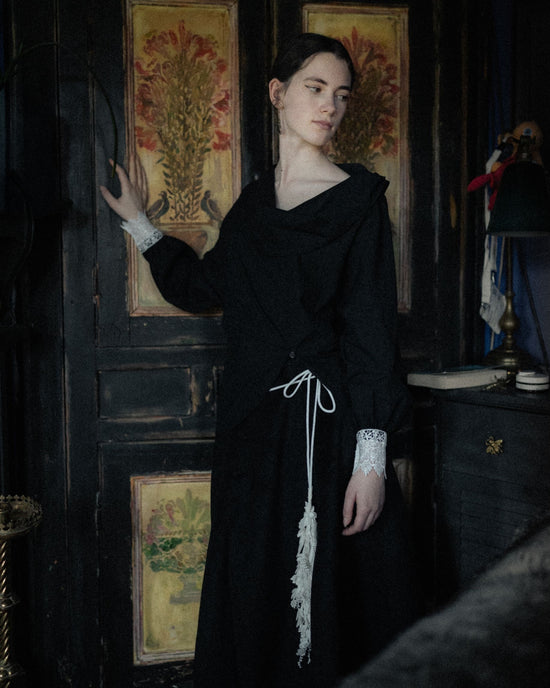 PERDU continues the spirit of haute couture houses, offering a select few pieces in each collection for bespoke service, bringing to life the appreciation and solemnity for clothing from a century ago.